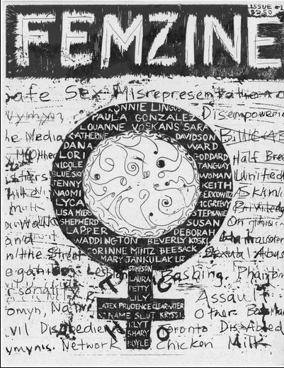 Click the images to read the full zines at the Internet Archive, the DC Public Library and other sources. And find lots more zines at the Riot Grrrl Archive!