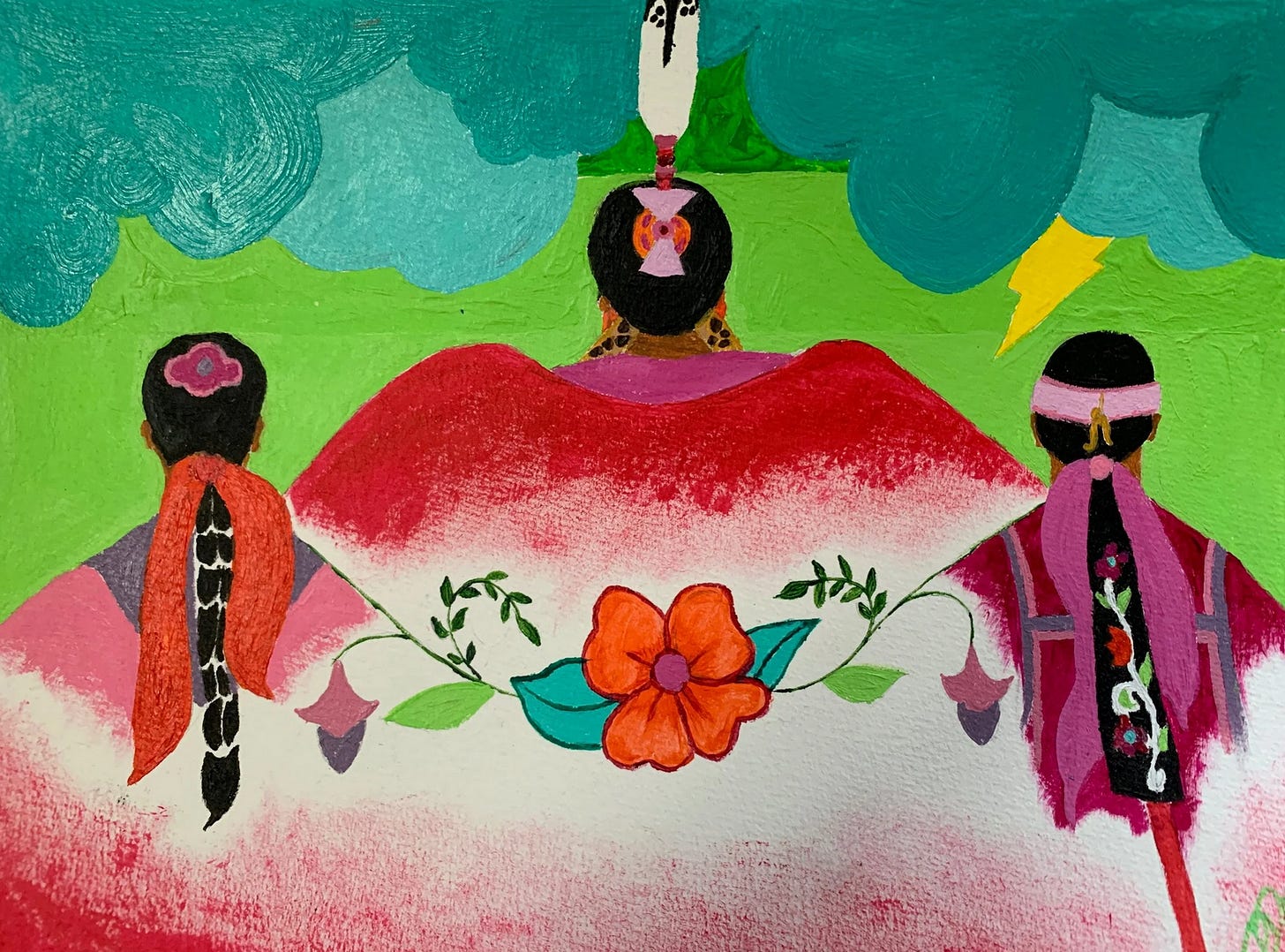 Image above: “Meskwaki Women Connected through Time”. Acrylic. All rights reserved.